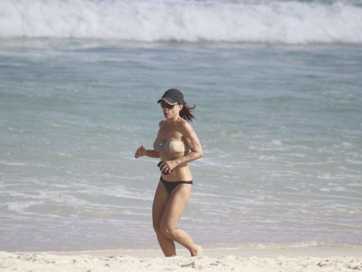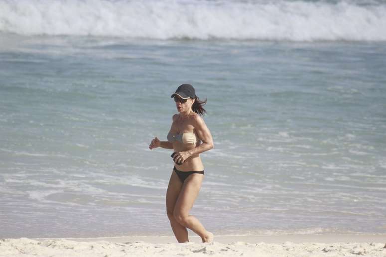 Carla Marins, 45 anos, não descuida da saúde nem mesmo no fim de semana. Neste domingo (9), a atriz foi clicada enquanto corria na praia da Barra da Tijuca, zona oeste do Rio de Janeiro, exibindo boa forma física. Depois do exercício, Carla relaxou no mar com o marido, Hugo Baltazar