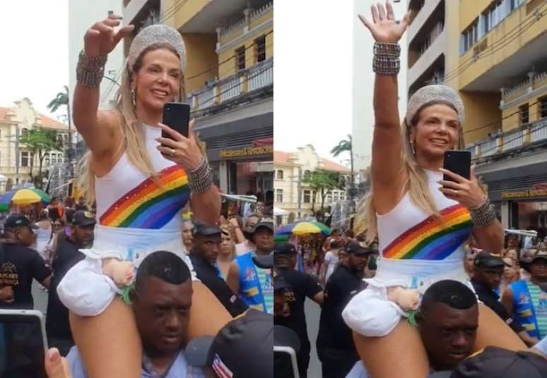"Eu subi nos ombros do segurança para conseguir ter o contato físico e, portanto, estar mais próxima das minhas crianças, em momentos pontuais do percurso, devido a minha estatura", escreveu.