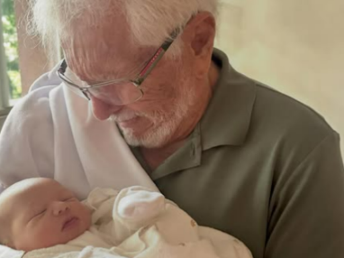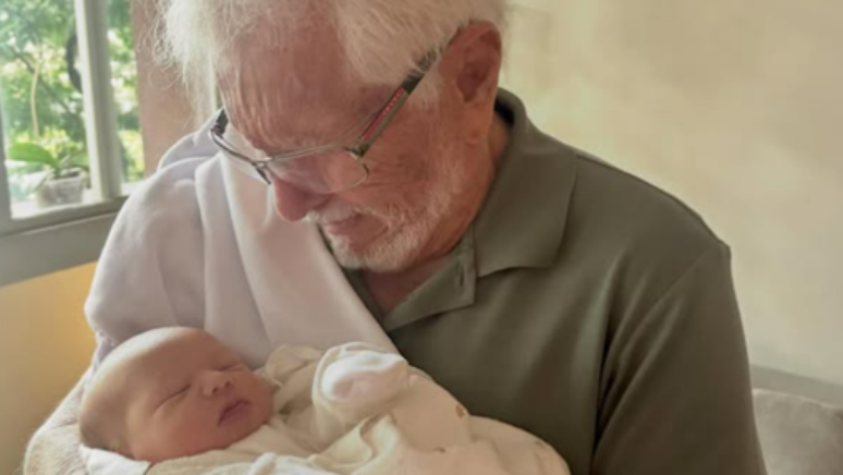 Carlos Alberto de Nóbrega, de 90 anos, se emocionou neste sábado, 11, ao compartilhar uma foto do momento em que encontrou pela primeira vez seu bisneto recém-nascido, Francisco.