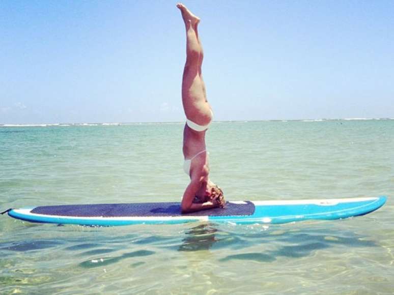 Curtindo o Réveillon em Pratigi, na Bahia, Huck postou uma foto de Dieckmann mostrando sua grande habilidade na ioga. Na imagem, ela aparece de cabeça para baixo sobre uma prancha de surf no meio do mar, fazendo uma difícil posição da prática, na qual se apoia usando somente a cabeça e o antebraço.