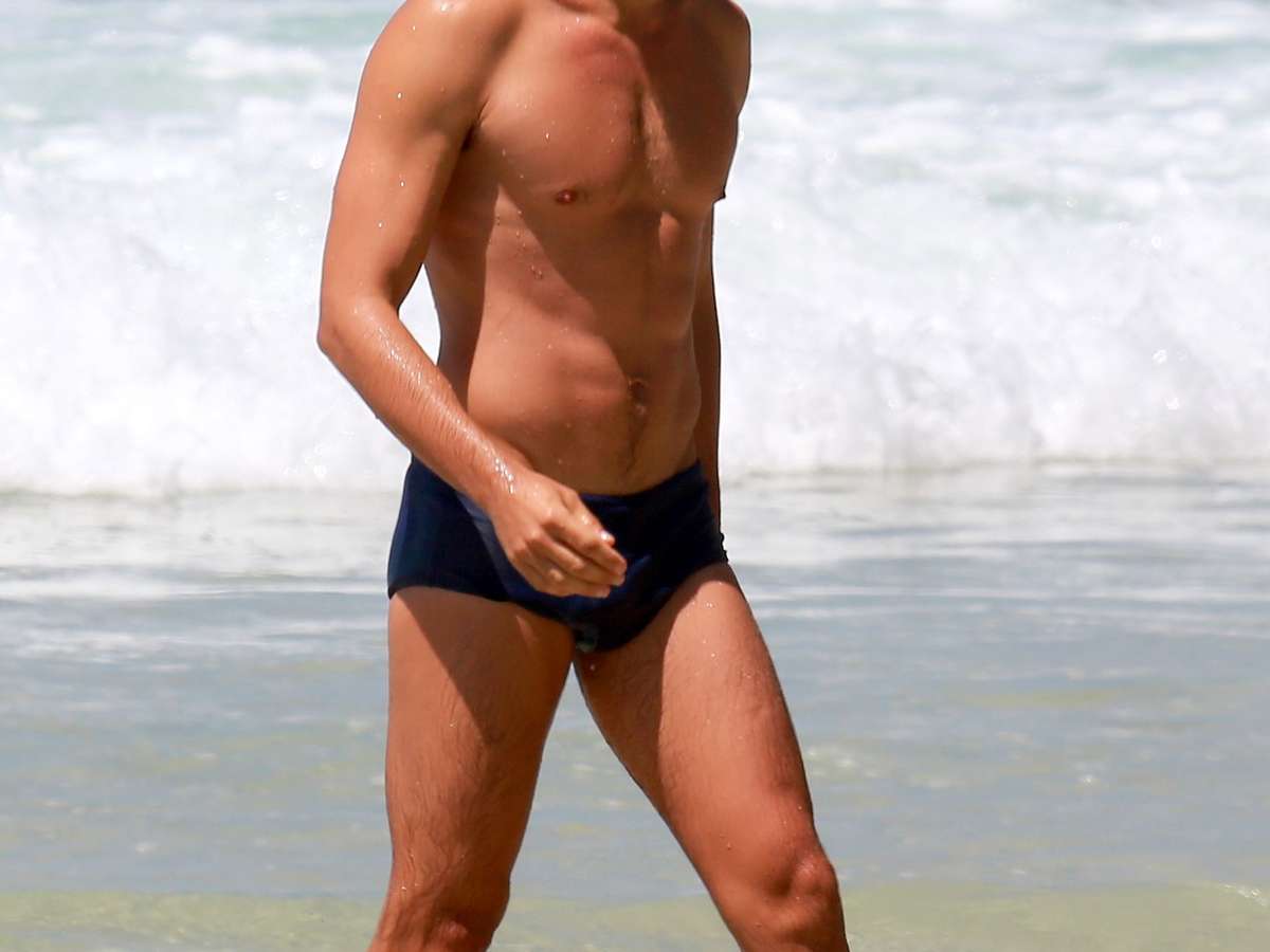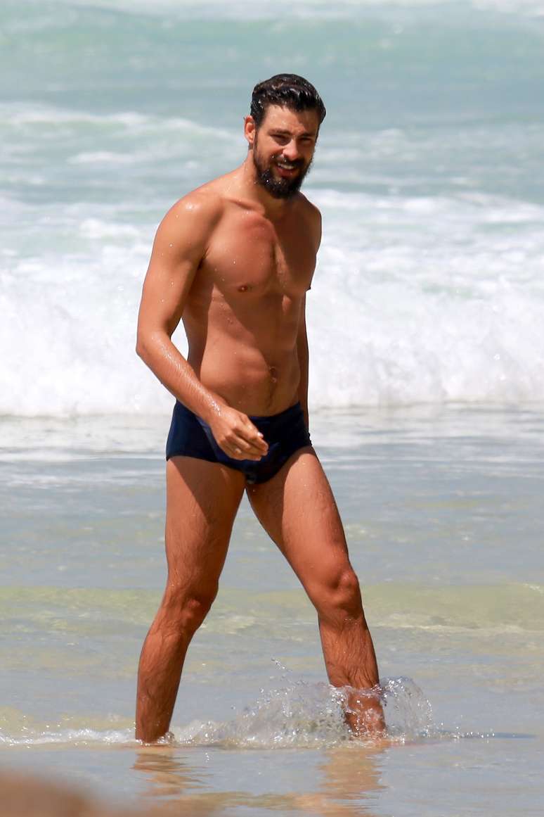Nesta quinta-feira (8), o ator Cauã Reymond aproveitou o dia de sol na praia da Joatinga, Zona Oeste do Rio de Janeiro, onde mergulhou e tirou fotos com uma fã