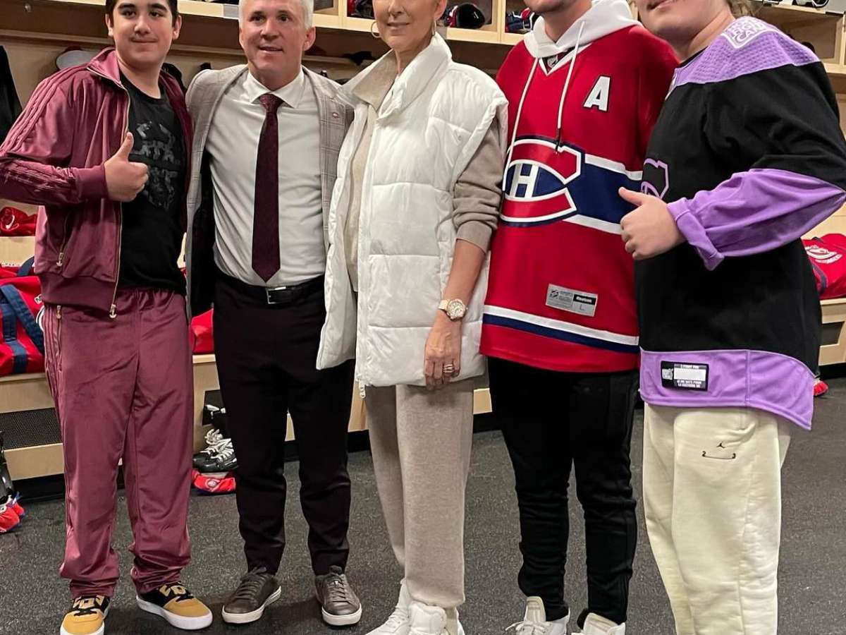 A artista foi assistir ao jogo do Montreal Canadiens junto com seus três filhos, René-Charles, 23, e os gêmeos Eddy e Nelson, de 13, de seu casamento com René Angélil. No Instagram, ela postou registros com a família no vestiário junto de executivos do time.