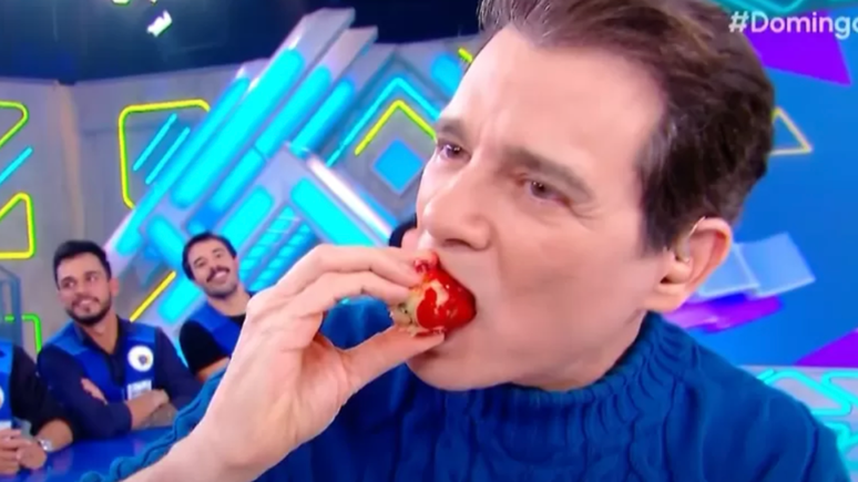 Durante a edição do programa Domingo Legal, o apresentador Celso Portiolli protagonizou momentos hilários ao provar o famoso 'morango do amor' ao vivo