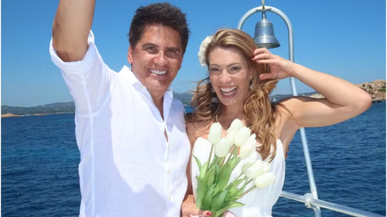 A renovação dos votos de casamento aconteceu em alto-mar, em um barco na Sardenha, em cerimônia íntima e carregada de significado. Vestidos de branco, eles trocaram juramentos ao som das bênçãos dos filhos e genros. Luigi César, o caçula, atuou como celebrante e conduziu todo o momento. Já Luma, a primogênita, fez uma oração emocionante. Elaine emocionou-se ao descrever: "Quanta emoção! Nosso filho fazendo a nossa renovação de votos dos 25 anos de casamento".