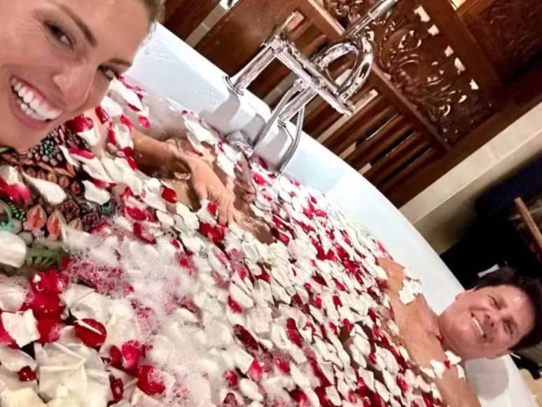 Elaine Mickely e Cesar Filho escolheram Bali, na Indonésia, como destino para celebrar os 25 anos de casamento. O casal está aproveitando a data especial em clima de muito romance e compartilhou com os fãs um registro que chamou atenção nas redes sociais. Na foto publicada pelo jornalista nesta quarta-feira (24), os dois aparecem em uma banheira coberta de pétalas vermelhas e brancas, curtindo um momento de descanso e carinho. "Uma pausa para um delicioso banho de espuma para relaxar!", escreveu ele na legenda.