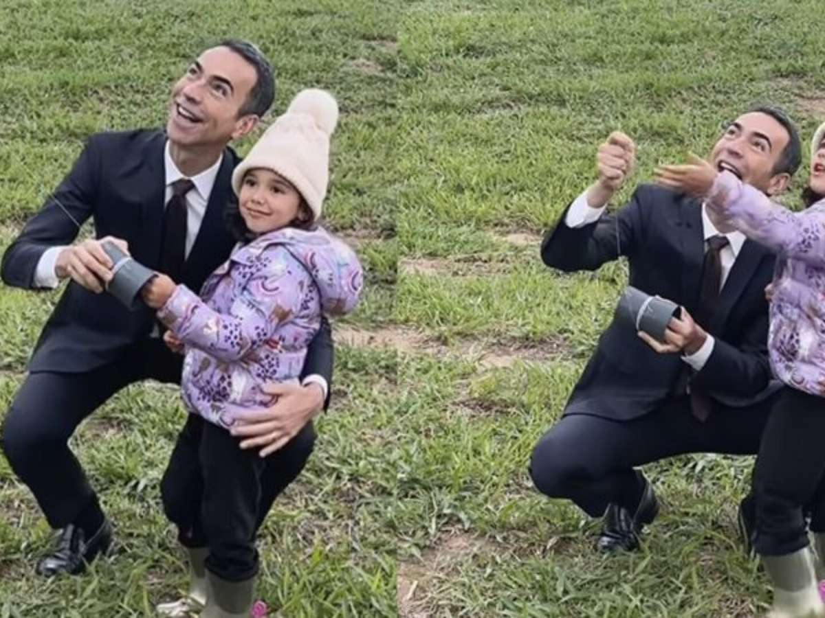Cesar Tralli encanta a web ao brincar de empinar pipa com a filha