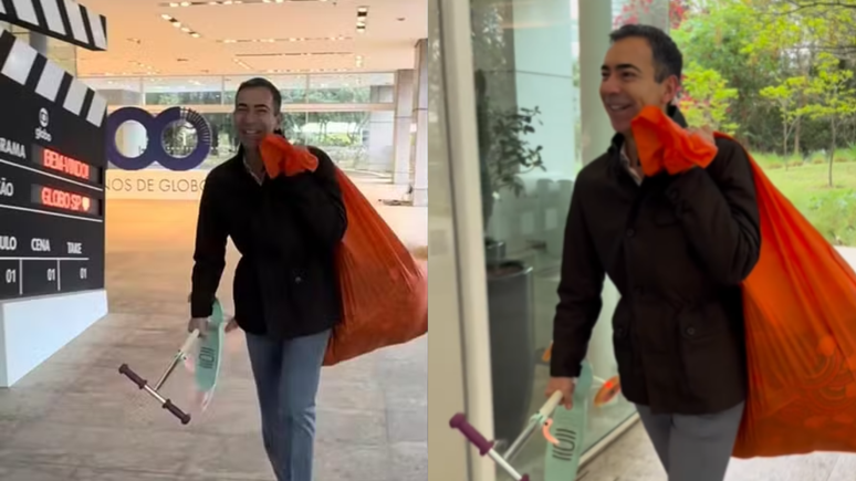 "Sempre gosto de trazer brinquedos da Manuella. A gente vai juntando, trazendo, e eu distribuo para a galera da redação, da firma. Enfim, fazer essa energia boa circular e muita criança brincar. Vamos doar! Está pesado o pacote", disse o jornalista enquanto se dirigia à redação com a "carga".