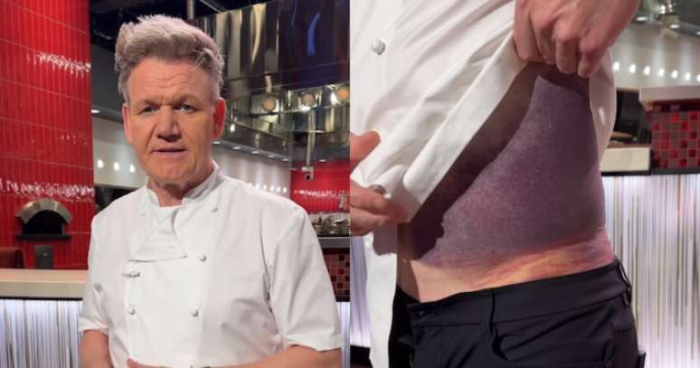Ramsay, de 57 anos, disse que está se recuperando, que ainda sente dor após o que chamou de "uma semana brutal". Ele contou que, por sorte, não quebrou nenhum osso, mas mostrou um hematoma roxo que se estende por toda a lateral de sua barriga. Assista ao vídeo: