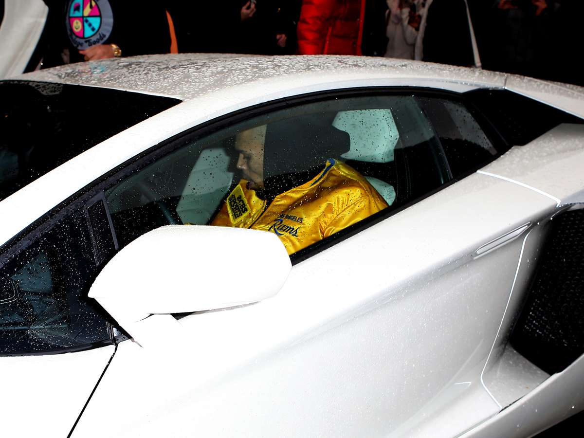 Na sexta-feira (7), Chris Brown alugou uma Lamborghni branca em Paris apenas para ir do hotel onde está hospedado ao local onde faria um show na capital francesa