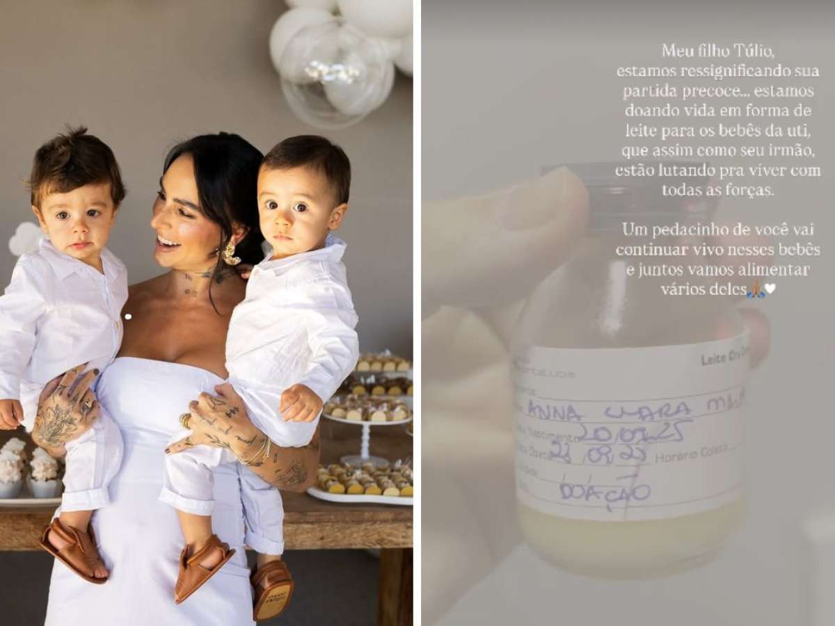 Ao comentar a doação, a ex-reality falou da importância de "ressignificar" o luto. "Meu filho Túlio, estamos ressignificando sua partida precoce... estamos doando vida em forma de leite para os bebês da UTI, que assim como seu irmão, estão lutando para viver com todas as forças. Um pedacinho de você vai continuar vivo nesses bebês, e juntos vamos alimentar vários deles", escreveu ela, em postagem realizada no Instagram.