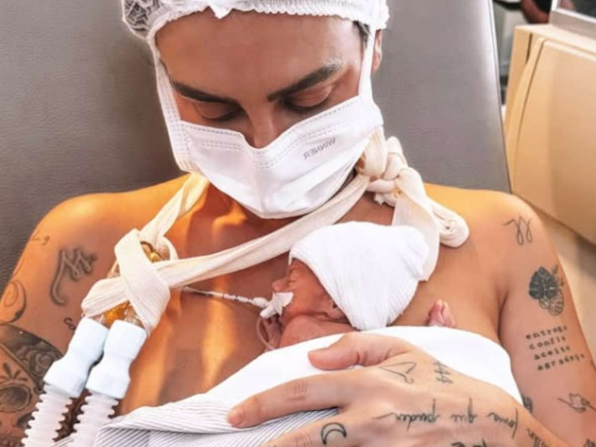 Clara Maia posta foto com Theo, filho que nasceu prematuro, e celebra: 'Primeiro colo'