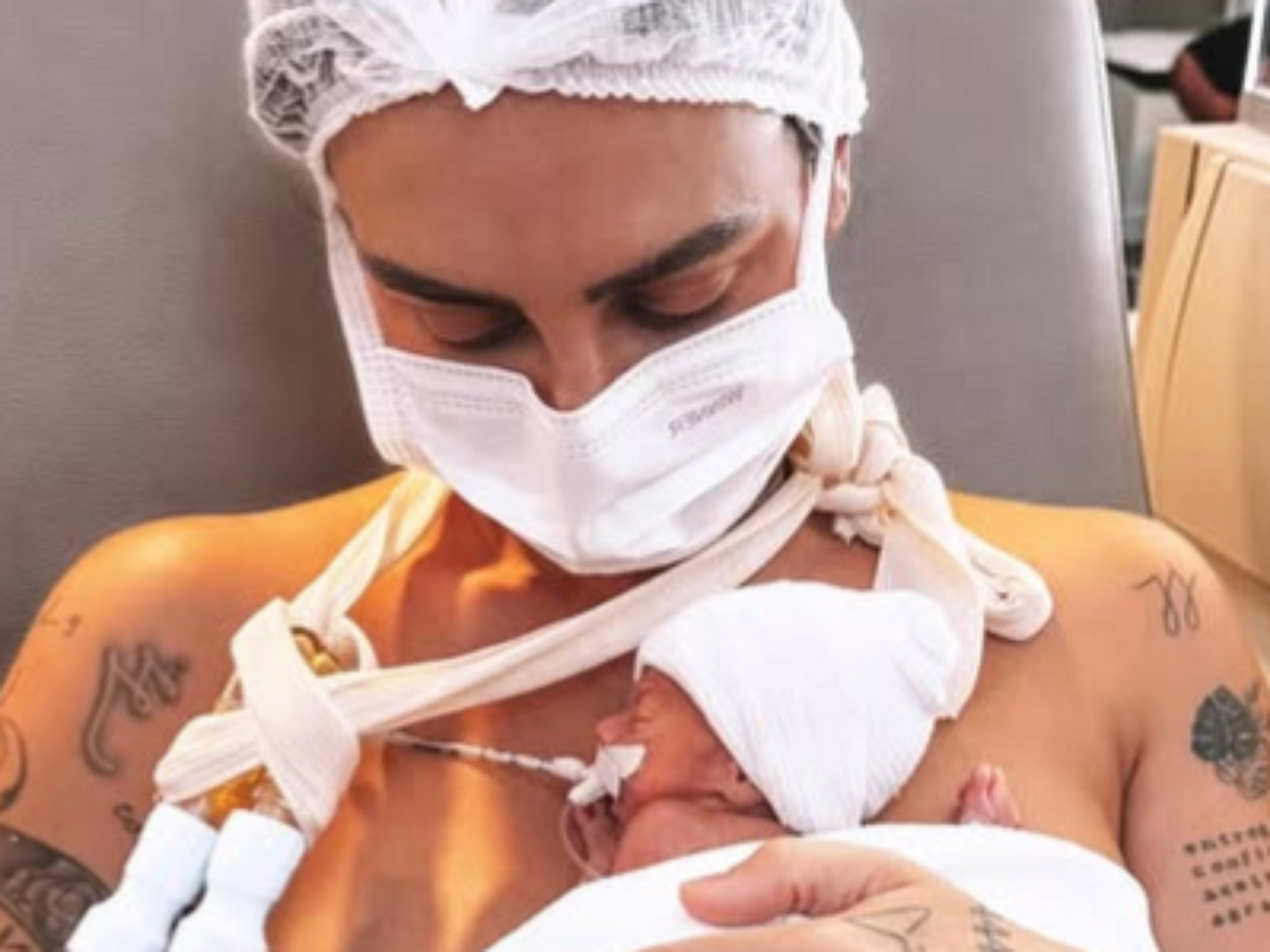 Clara Maia segura pela primeira vez gêmeo prematuro que sobreviveu: ‘Carinho na alma’