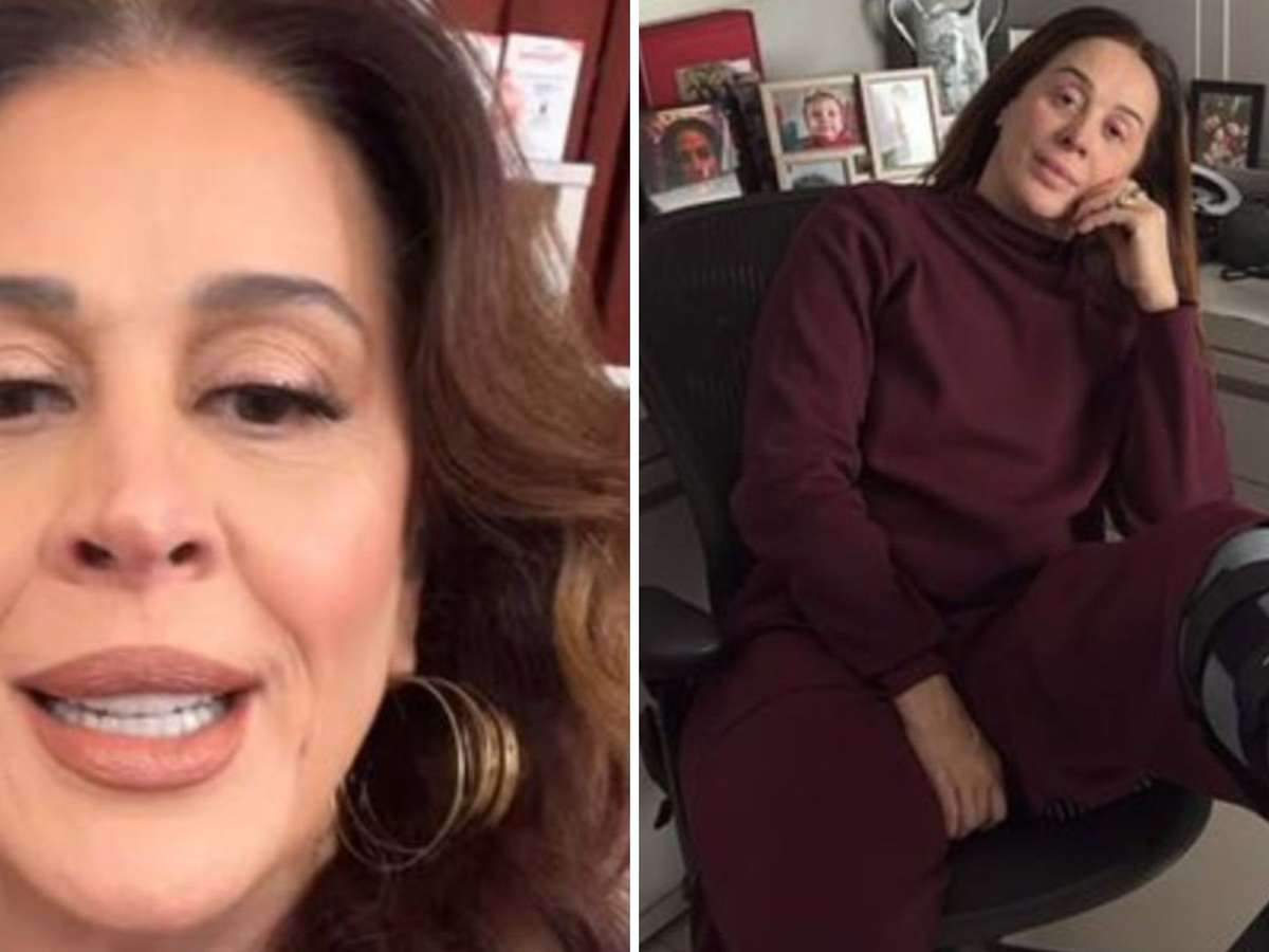 Claudia Raia sofreu uma fratura no tornozelo durante apresentação em Goiânia e precisou cancelar a agenda do espetáculo "Cenas da Menopausa".
