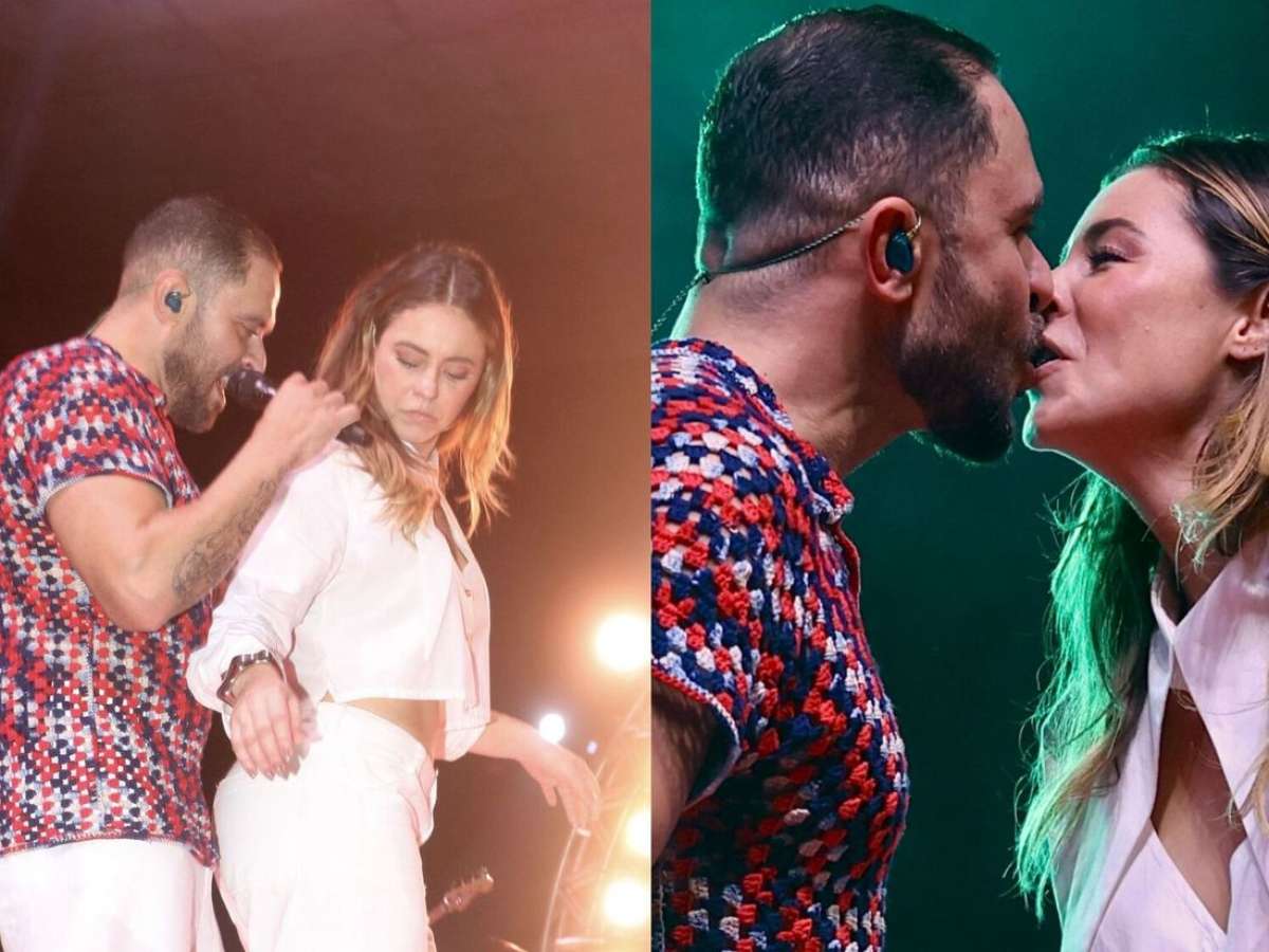 Clima quente! De barriga de fora, Paolla Oliveira dança e protagoniza troca de carícias com Diogo Nogueira no palco