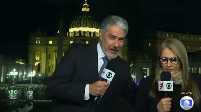 Ilze Scampirini se esquiva de abraço de William Bonner ao vivo, durante cobertura do conclave no Vaticano; confira