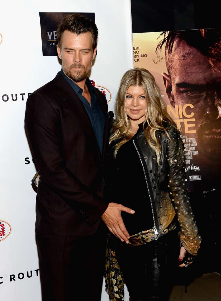 Fergie não deixou de acompanhar o marido, Josh Duhamel, na première em Hollywood, nos Estados Unidos, do filme 'Scenic Route', no qual o ator vive o protagonista Mitchell. Nas fotos, clicadas na terça-feira (20), a cantora exibe o barrigão de grávida ao lado do amado