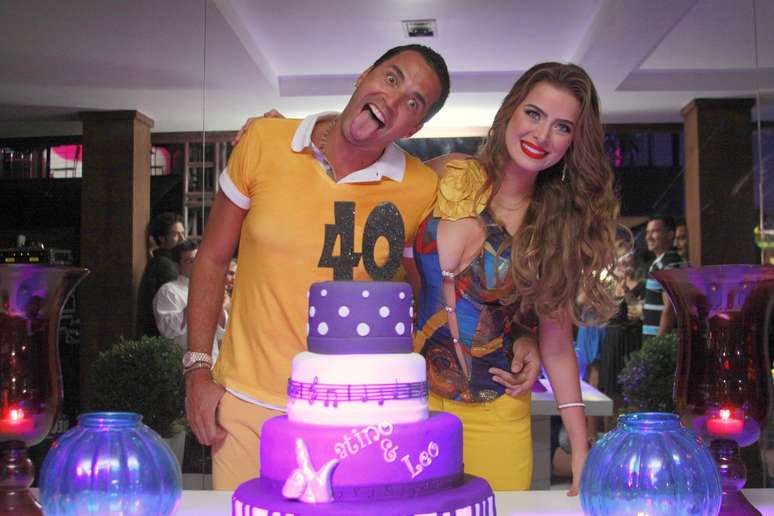 O cantor Latino comemorou seus 40 anos com festa realizada na noite da última segunda-feira (4), no Rio de Janeiro. Na imagem, a atriz Nívea Stelmann e o aniversariante
