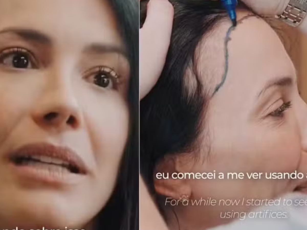 "Desde muito nova eu tinha pouquinho cabelo, sempre muito ralinho... depois de muito tempo mexendo, eu fui tendo muita queda e perdendo volume", relatou. Ela acrescentou que, nos últimos meses, precisou recorrer a acessórios como bonés, lenços e faixas para disfarçar a perda de fios.