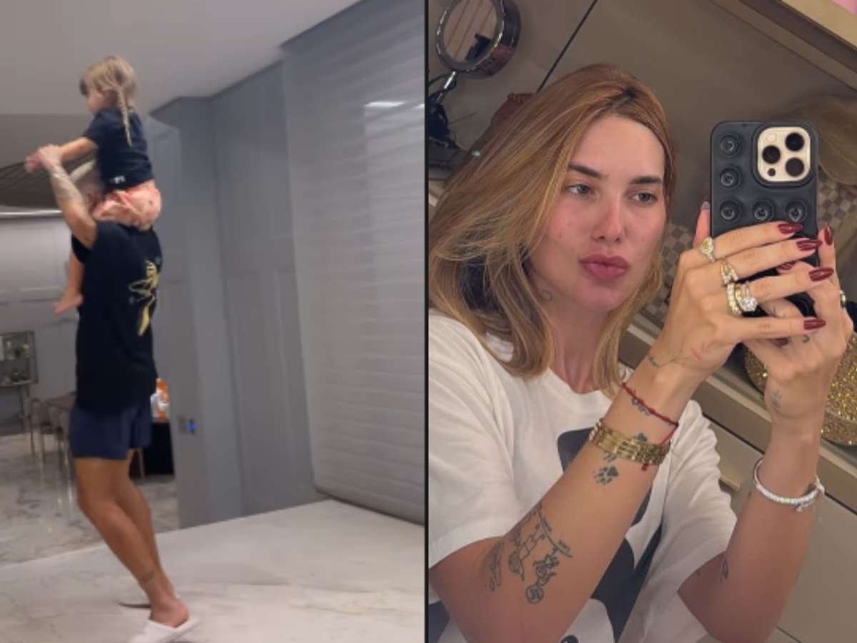 Na ocasião, ela se recusou a dormir no mesmo horário que os irmãos mais novos, Maria Flor e José Leonardo. A influenciadora revelou que a pequena teria pedido para o pai colocar música e gravou eles dançando juntos.