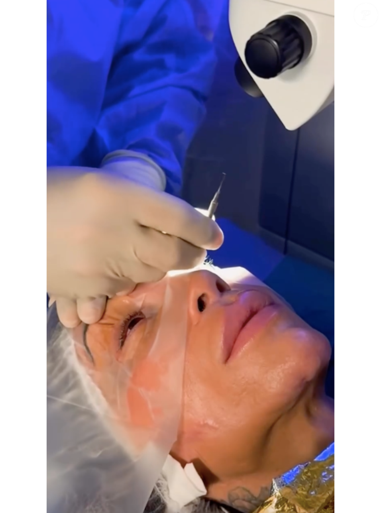 Maya Massafera em procedimento para modificar a coloração dos olhos (Foto: Divulgação) Feminização facial: impacto visual e financeiro