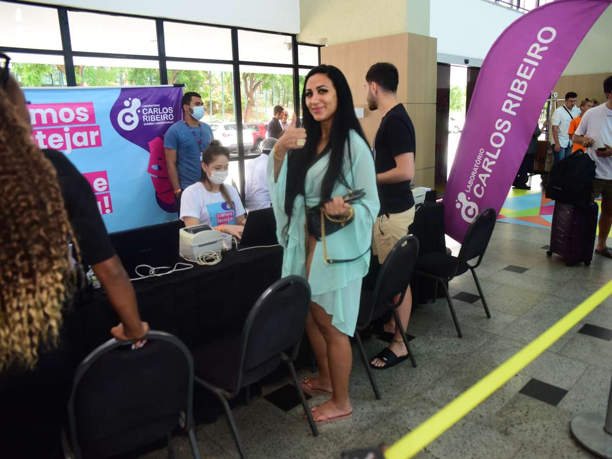 Dayanne Bezerrra, de 33 anos, chegou na tarde desta segunda-feira, 5, na Farofa da Gkay. A influenciadora, que realizou protestos para retirar a irmã Deolane de A Fazenda 14 por causa do quadro de saúde de sua mãe, Solange, foi flagrada fazendo teste de covid-19 no hotel de luxo, em Fortaleza (CE). O procedimento é protocolo padrão para que os convidados possam curtir sem medo a festança de três dias.