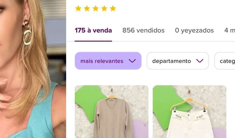 Na plataforma Enjoei, a apresentadora da Record TV divulgou mais de 180 itens, que vão de vestuários a acessórios.