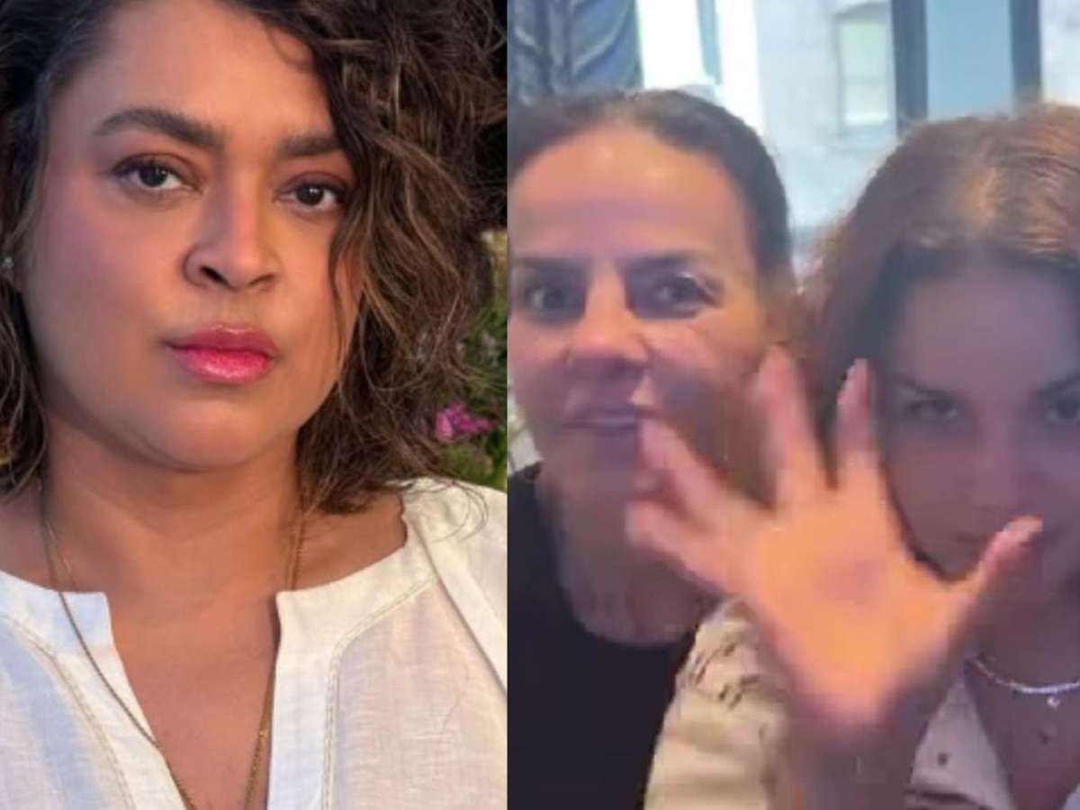 Ao fundo, foi possível identificar a trilha musical de "Dame Um Grrr", de Fantomel e Kate Linn, uma das tendências que está viralizando no TikTok. Preta, tratando o câncer assim como Edu Guedes, aparecia no fundo, e estava acompanhada de Cynthia Sangalo, irmã e empresária de Ivete, além do assessor, Dito Espinheira, e da DJ Ju de Paula, que apareceram em primeiro plano.