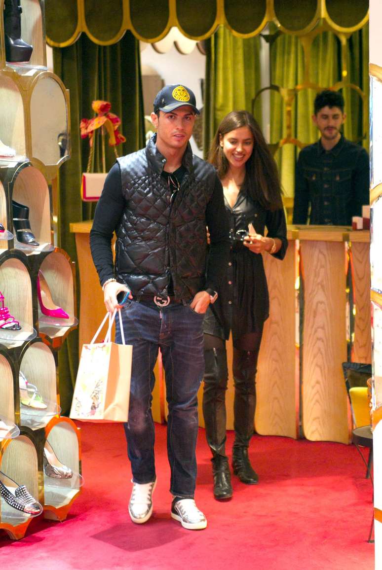 Jogador do Real Madrid, Cristiano Ronaldo foi fotografado durante um passeio com sua namorada, a russa Irina Shayk, por um shopping da capital espanhola, dia 12 de março