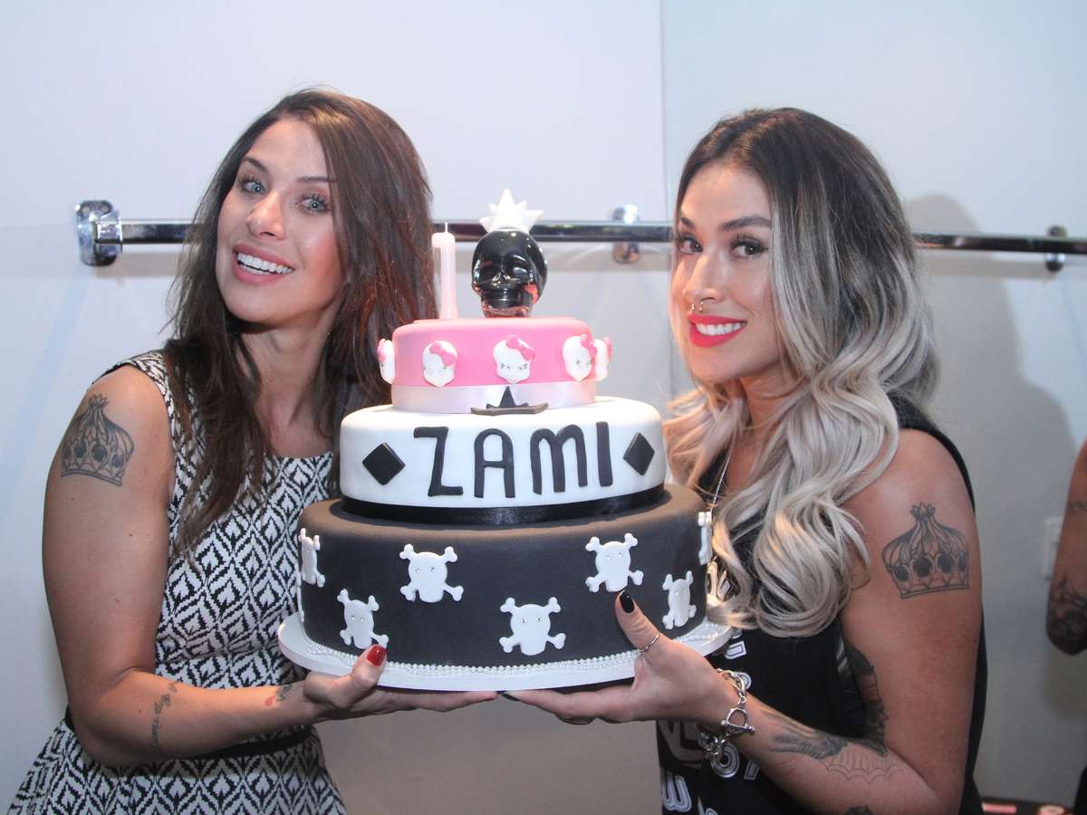 As ex-panicats Dani Bolina e Lizi Benites comemoraram neste sábado (26) o primeiro ano de sua loja de roupas, a Zami, em Moema, bairro da Zona Sul de São Paulo. As duas receberam famosos na festa, que contou com um bolo estilizado e exposição da nova coleção da grife.
