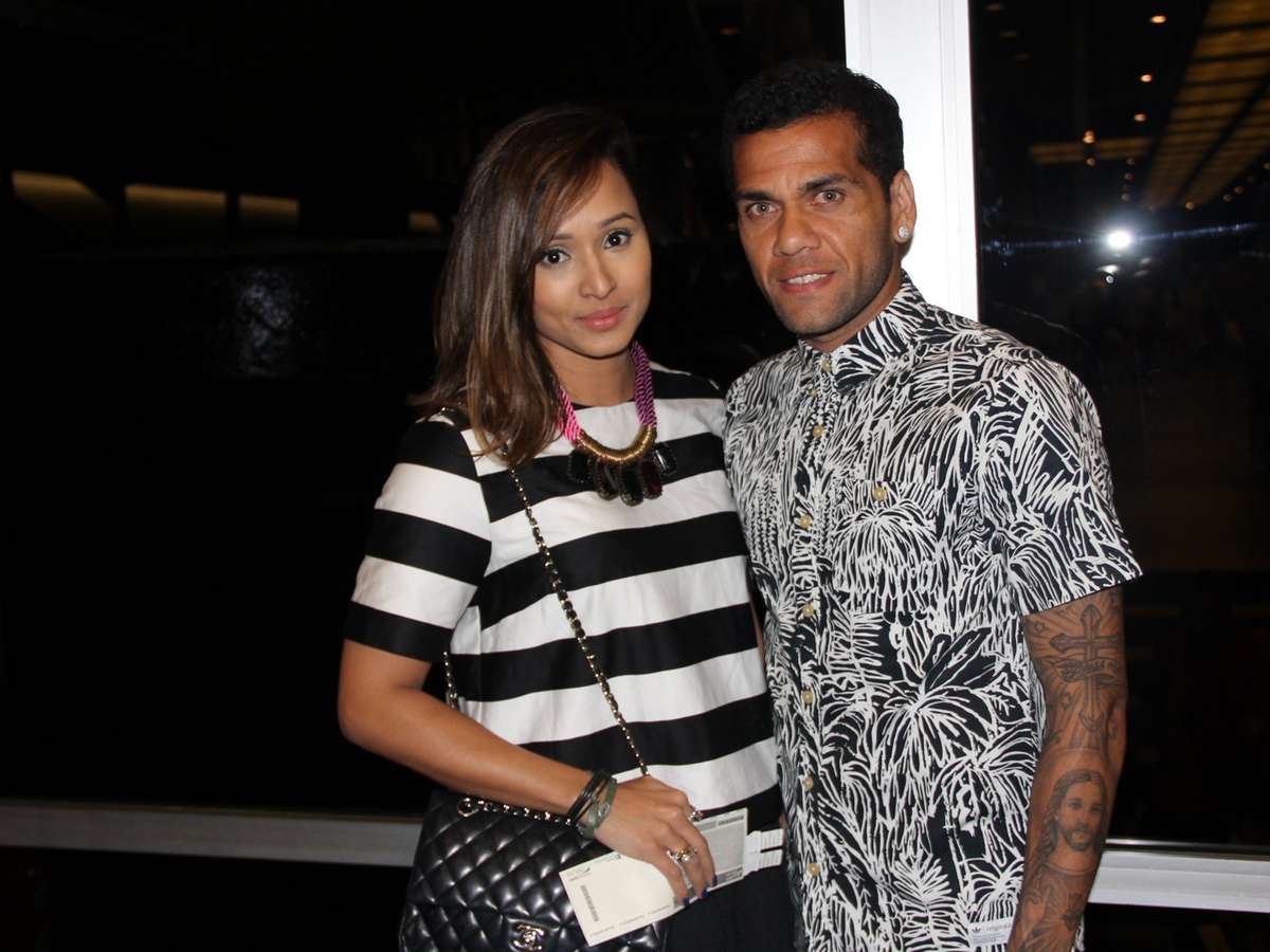 Daniel Alves prestigia espetáculo com a namorada no Rio