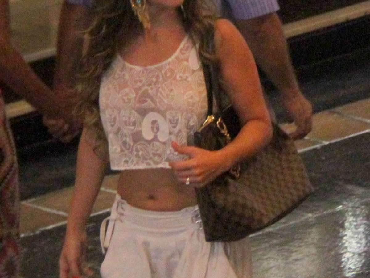 De barriga de fora, Paula Fernandes faz compras no Rio