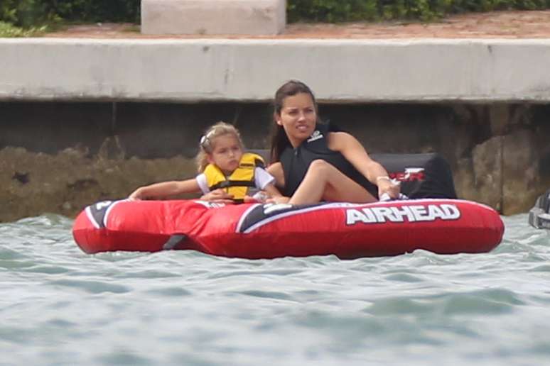 Adriana Lima se divertiu com o marido, Marko Jari, e a filha Valentina em Miami, nos Estados Unidos, no último domingo (21). Eles brincaram em um jet ski e bote