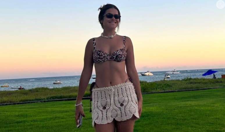 Maisa Silva provou que está antenada no mundo da moda e combinou um biquíni animal print com saída de praia de crochê para férias em Pernambuco, colecionando elogios de Rafa Kalimann: 'Linda'