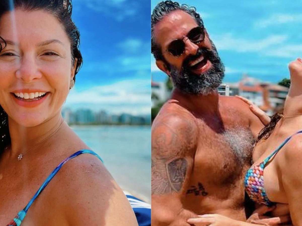 A campeã da A Fazenda 14 apostou no biquíni fininho para curtir o dia de sol e ostentou as curvas. Com modelito cavado, ela mostrou o corpaço em clique romântico com o amado.