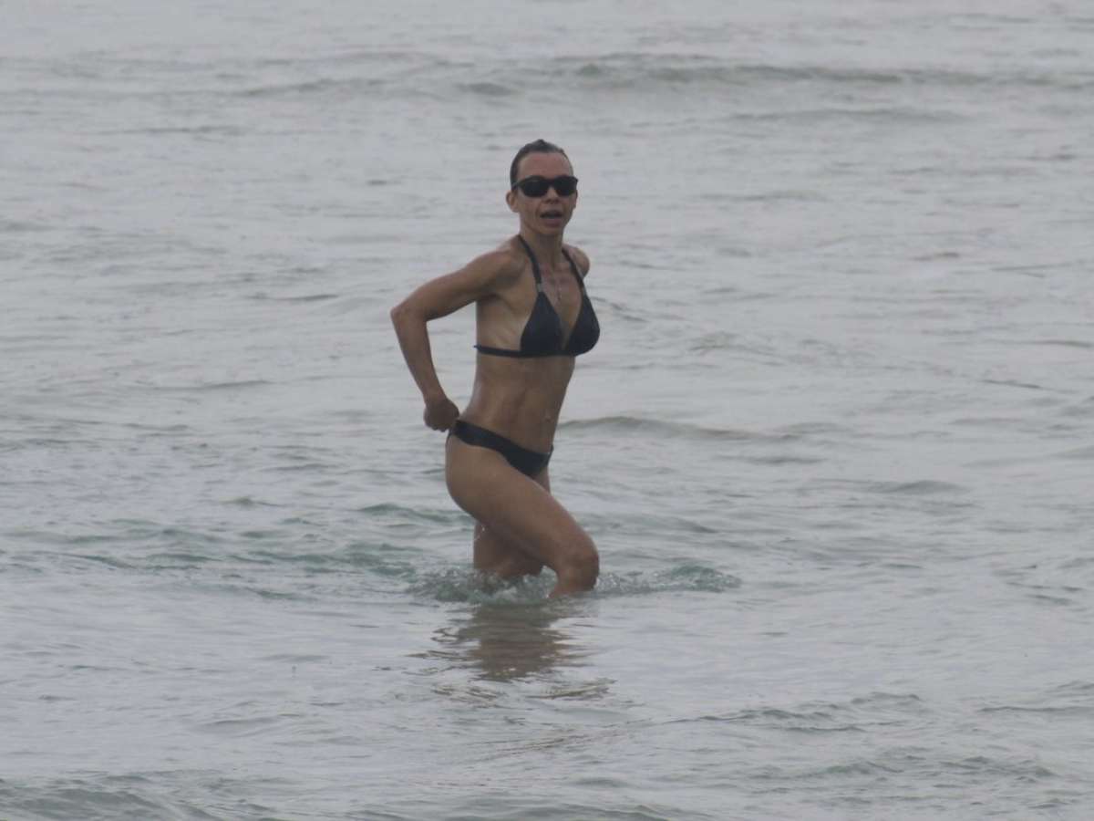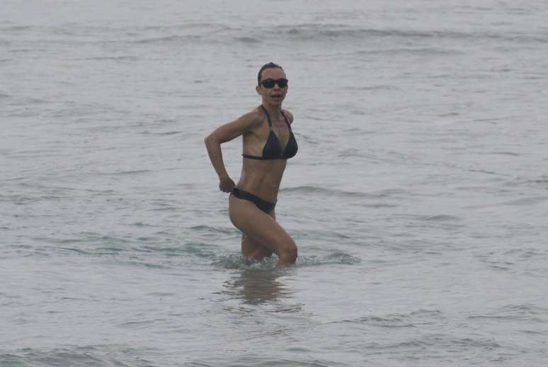 Carla Marins aproveitou esta quinta-feira (13) para praticar exercícios na praia da Barra da Tijuca, no Rio de Janeiro. Depois de correr na areia, a atriz mergulhou de óculos escuros no mar para se refrescar