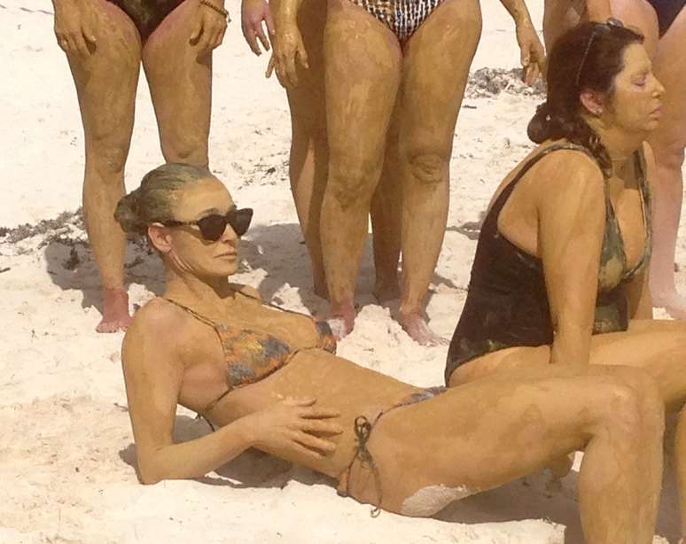 Curtindo suas férias no México, Demi Moore resolveu relaxar para aproveitar o sol de Tulum, no México. Vestindo um pequeno biquíni, a atriz fez um banho medicinal com argila. Cercada por mulheres também cobertas pela lama, Demi se deitou na areia e aproveitou os momentos de tranquilidade