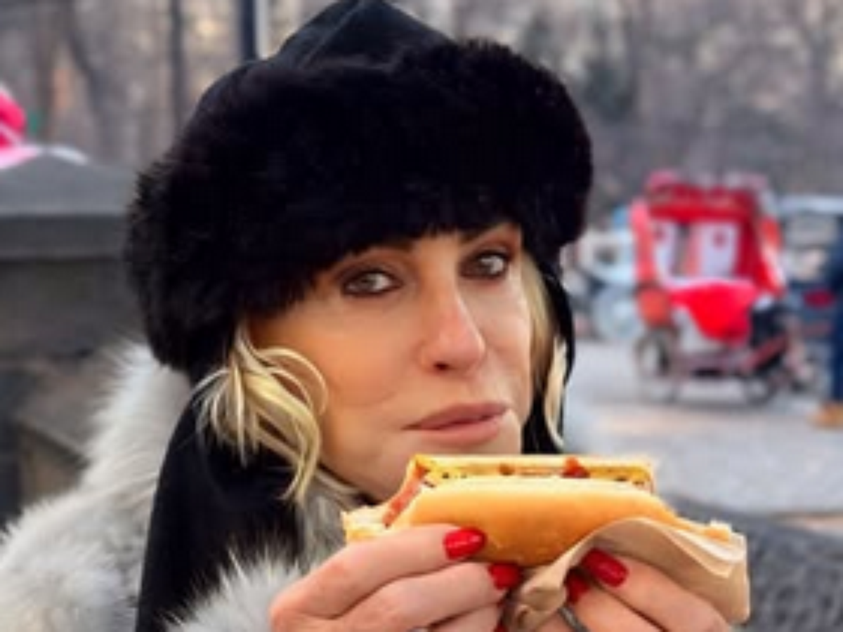 Ela compartilhou fotos comendo o tradicional cachorro-quente do Central Park nas redes sociais nesta terça-feira, 23