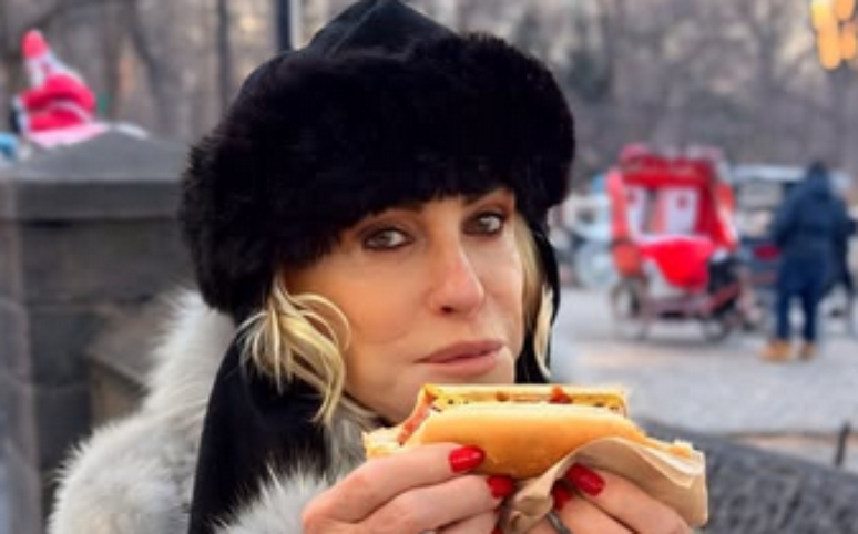 “Good morning! [Bom dia!]. Diretamente de Nova Iorque, saboreando o tradicional cachorro-quente no Central Park. Pense em um frio, minha senhora. Quase congelados, mas muito felizes”, escreveu a apresentadora no Instagram.