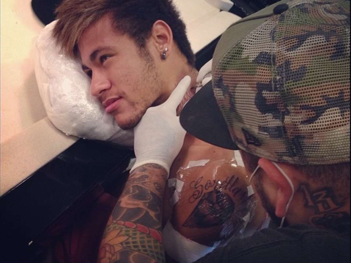 O atacante Neymar aproveitou o período de festas no Brasil para fazer uma nova tatuagem. O tatuador Adão Rosa usou o Instagram para publicar uma foto em que aparece tatuando o pescoço do astro do Barcelona e da Seleção Brasileira.