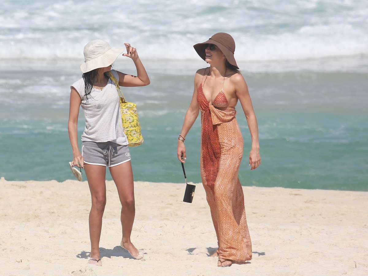 Na manhã desta terça-feira (6), Grazi Massafera curtiu o calor carioca na praia da Barra da Tijuca, ao lado da amiga Ana Lima. As duas foram fotografadas rindo e conversando. Enquanto Ana Lima optou por um short jeans e camiseta básica, Grazi foi à praia de vestido longo e chapéu