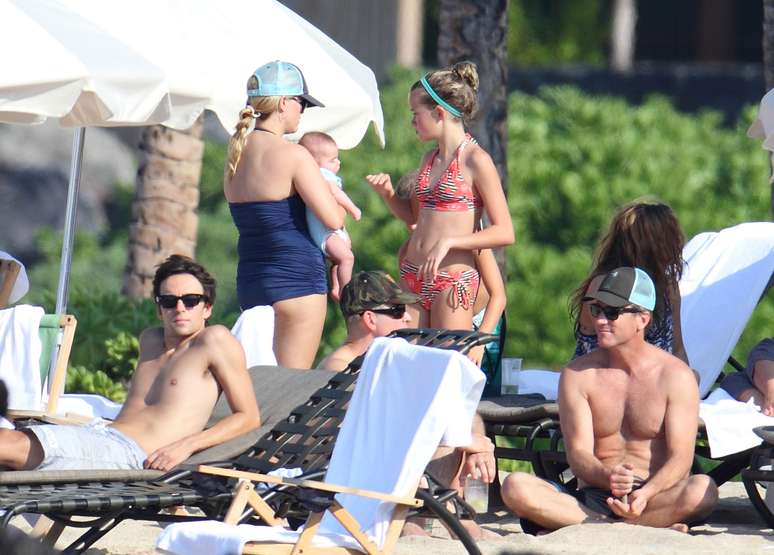 De maiô, Reese Whiterspoon curte férias em família no Havaí