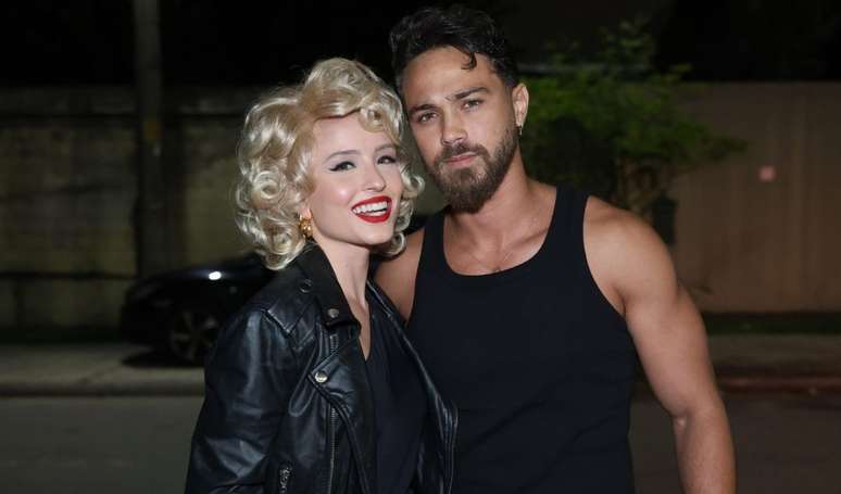 Intérprete da sofrida Estela, Larissa Manoela combinou fantasia com o marido, André Luiz Frambach, com quem renovou os votos em 2024 após a primeira cerimônia no ano anterior. O casal usou roupas pretas em uma homenagem ao filme "Grease — Nos Tempos da Brilhantina" (1978), protagonizado por Olivia Newton-John (morta em 2022) e John Travolta, no qual a americana dá vida a Sandy, personagem que inspiraria Noely e Xororó a batizarem a filha com esse nome.