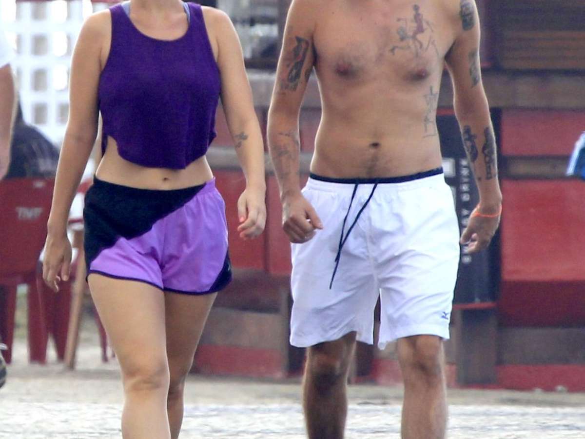 De shortinho e barriga de fora, Juliana Didone caminha com o namorado