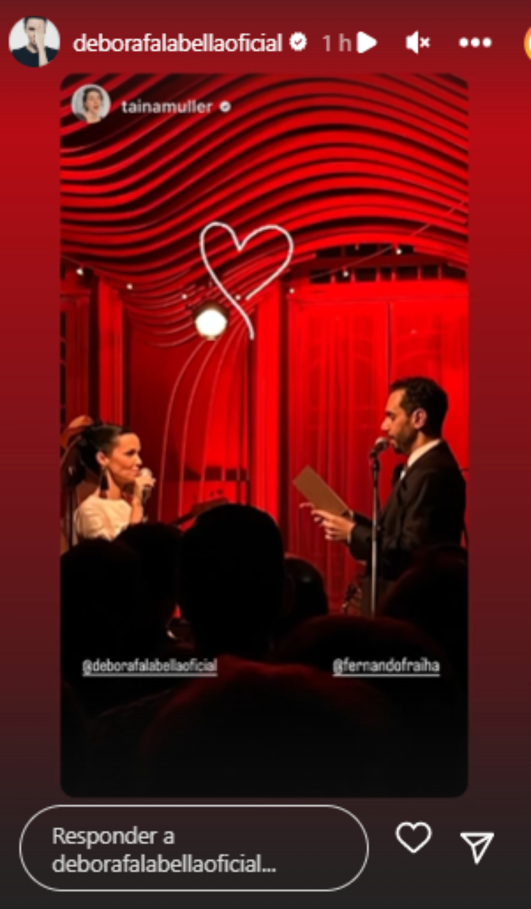 A atriz Andréia Horta (39), que é grande amiga de Débora, também postou registros da cerimônia, em que apareceu de outras amigas famosas, como Adriana Esteves, Mariana Ximenes e Bianca Comparato.