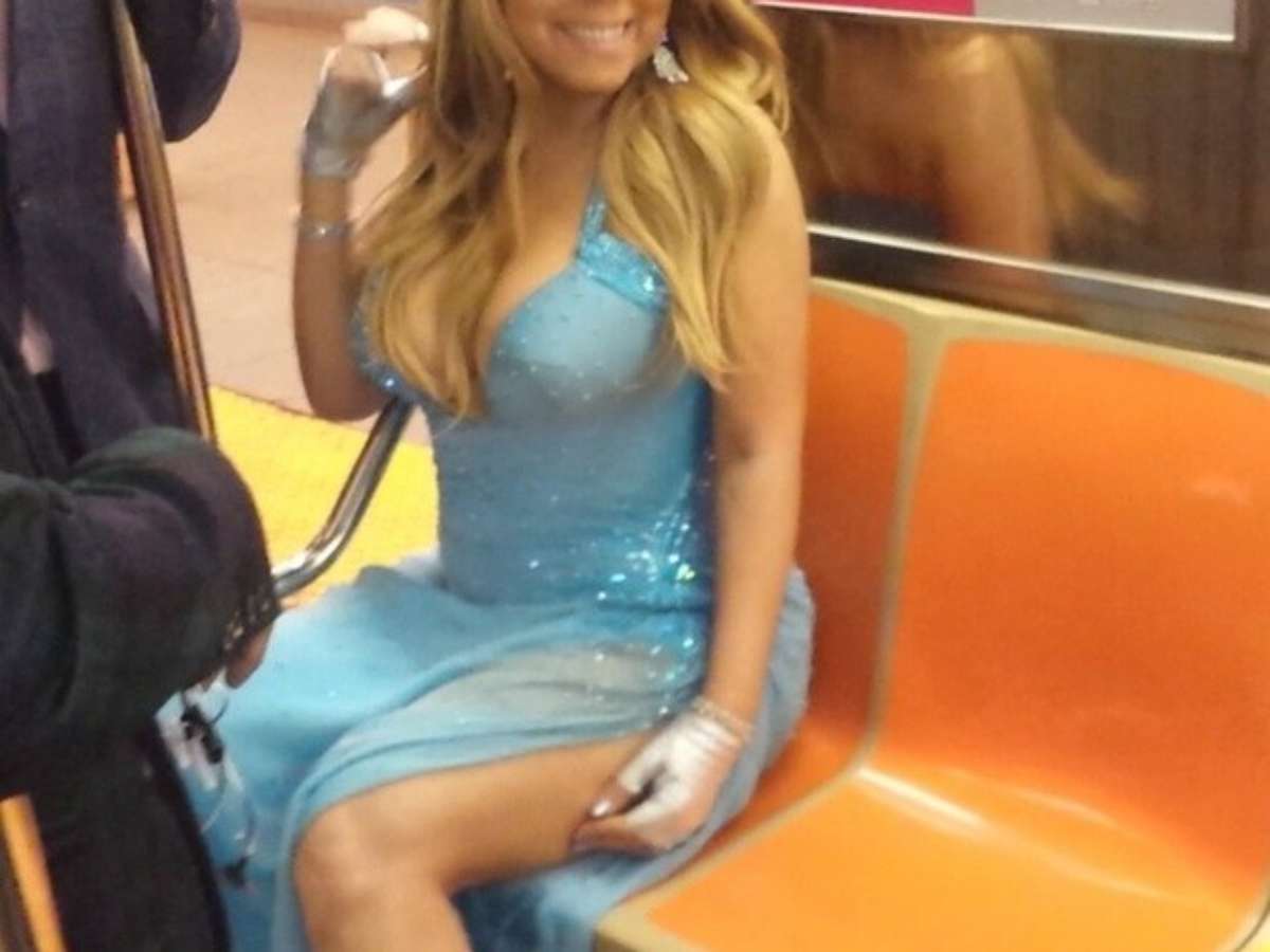 No tapete vermelho, Mariah chamou a atenção ao chegar com um vestido azul decotado e luvas prata. Depois da festa, a cantora resolveu se divertir e foi dar uma volta de metrô.