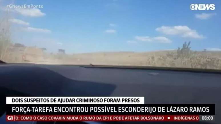 "Esta edição começa com a notícia de que a polícia de Goiás trocou tiros agora pouco com Lázaro Ramos, suspeito de praticar assassinatos em série no entorno do Distrito Federal", disse o jornalista ao vivo.