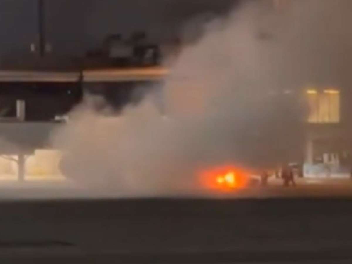 O fogo começou na parte inferior direita do avião, próximo ao local de operação do veículo de carga. Imagens compartilhadas nas redes sociais mostram chamas e uma densa fumaça ao lado da aeronave, enquanto passageiros são retirados pelas escorregadeiras infláveis. Em outras gravações, bombeiros aparecem afastando o equipamento queimado e limpando marcas de fuligem na fuselagem.