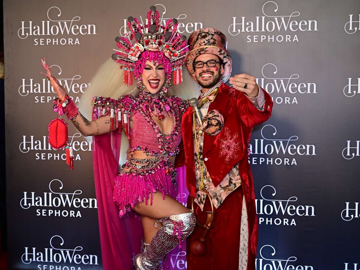Diego Cruz e Bianca Andrade celebram o amor 'cafona' com fantasias de Chacrinha e Elke Maravilha no Baile da Sephora