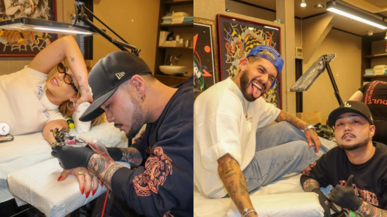 Do outro lado do mundo, Virginia faz tatuagem com Zé Felipe e sofre: 'Arrepiando toda'