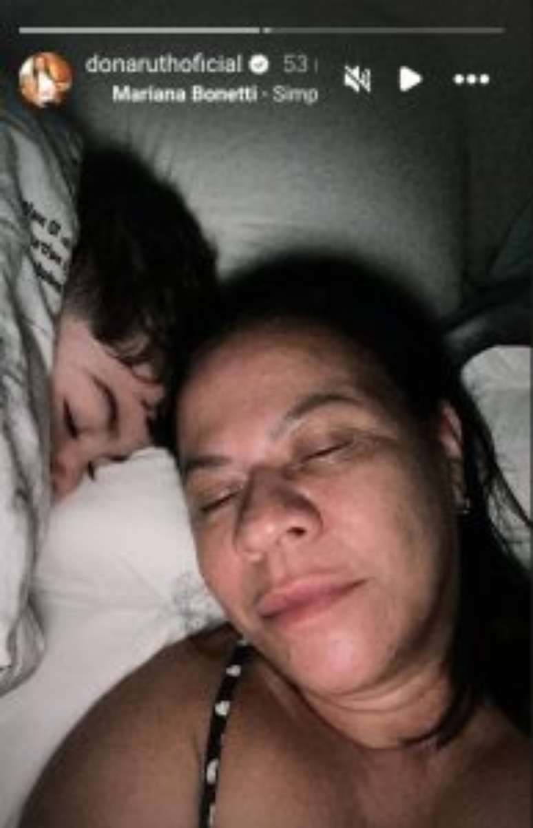 Por meio dos stories de seu Instagram oficial, Dona Ruth compartilhou um registro ao lado do neto. Na selfie, os dois surgiram agarradinhos, deitados na cama, logo após acordarem. A mãe de Marília mostrou o carinho e o apego entre eles, já que Léo vive há 5 anos com ela, em guarda compartilhada.
